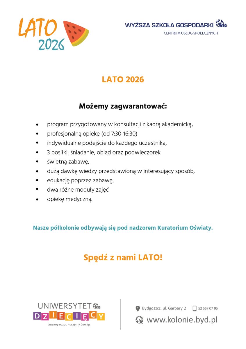 Mamy nadzieję, że wspólna podróż zapadnie na długo wszystkim uczestnikom. Podczas organizowanego przez Wyższą Szkolę Gospodarki wypoczynku nauka zabawa idzie w parze z nauką. W trakcie warsztatów w kameralnych grupach (15 osobowych) dzieci zdobywają wiedzę i umiejętności a także nowe znajomości.